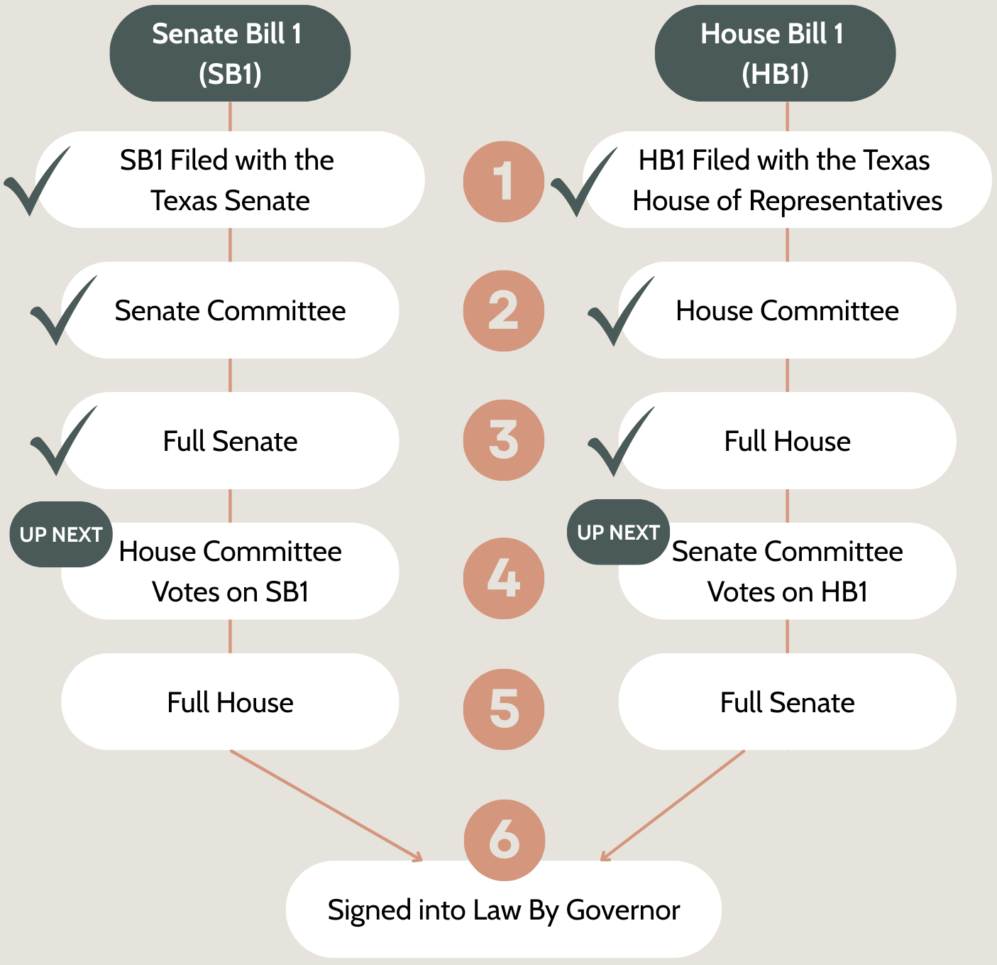 We’ve put together an overview of the legislative process for SB1 and HB1 so you can get a better understanding of how bills are passed,where we are in the process, and what’s next.