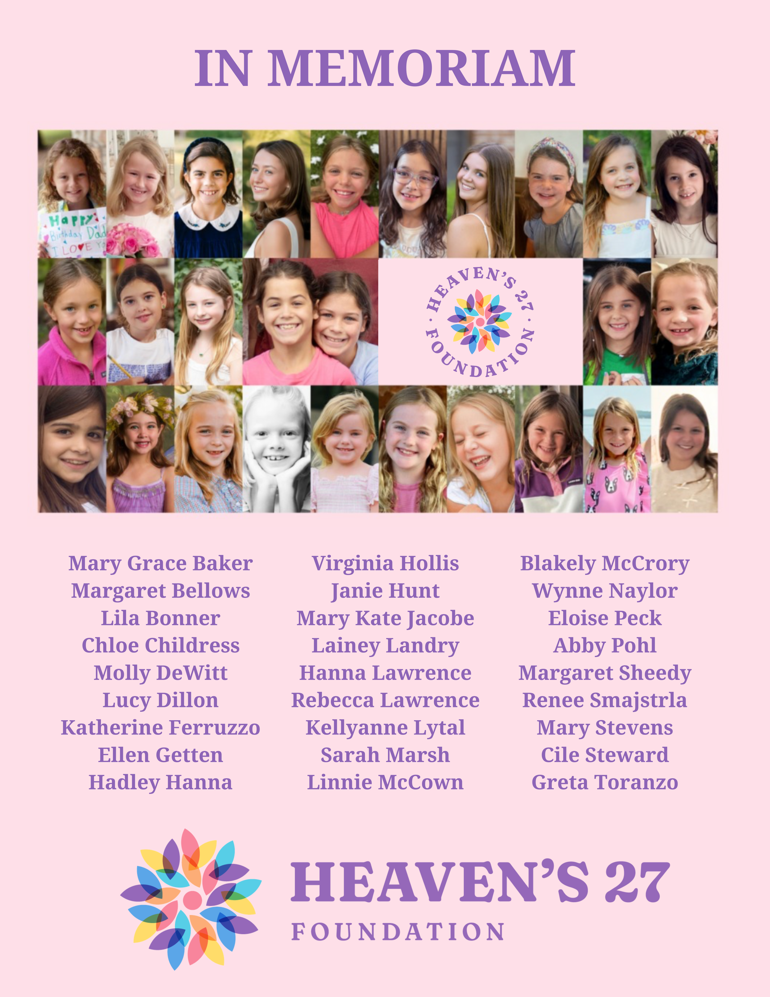 We hope to honor the enduring light of the “Heaven’s 27” by continuing to remember their unique lives and legacies via the Heaven’s 27 Foundation, created by their families to turn their spirit of joy and generosity into scholarships, community programs and causes, and the ongoing Campaign for Camp Safety — because every child deserves a safe summer.